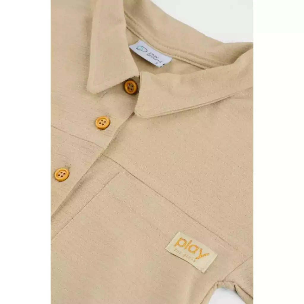 A Camisa é confeccionada em malha florence 93% algodão, 6% poliéster e 1% elastano, possui gola tradicional, fechamento por botões, mangas curtas, etiqueta decorativa frontal e barra com elástico.